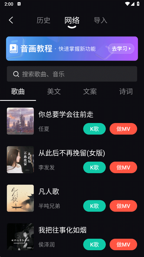 3、还可以通过qq音乐、酷狗等途径来导入歌曲;