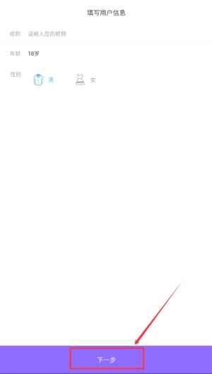 2、在个人资料页,根据提示依次设置您的昵称与年龄信息。