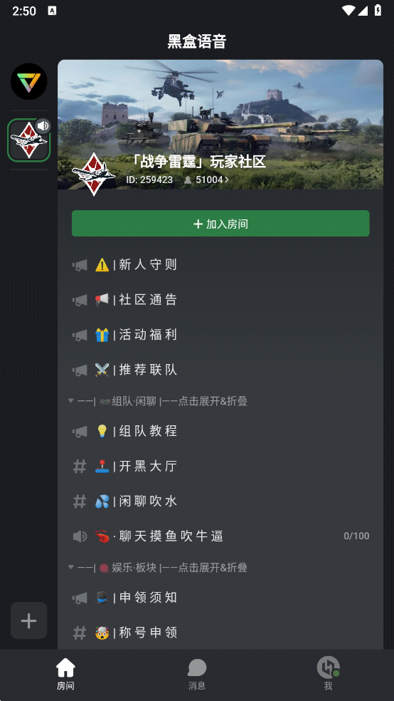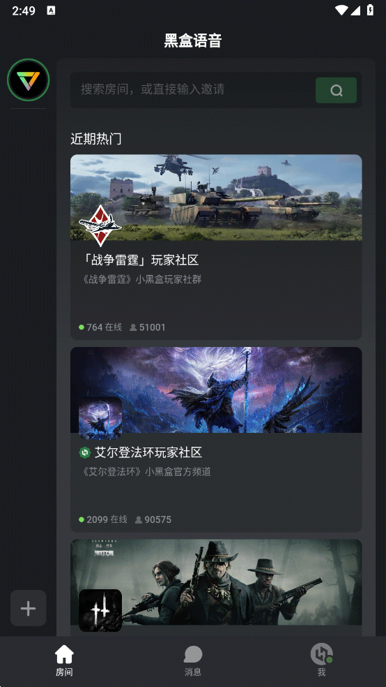 4、【热门房间】几十个游戏主题的大型热门房间供你挑选,轻松找到开黑队友。