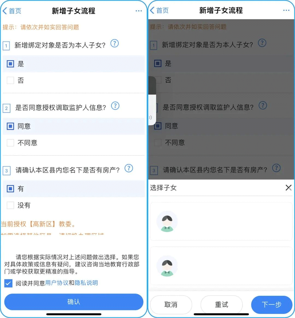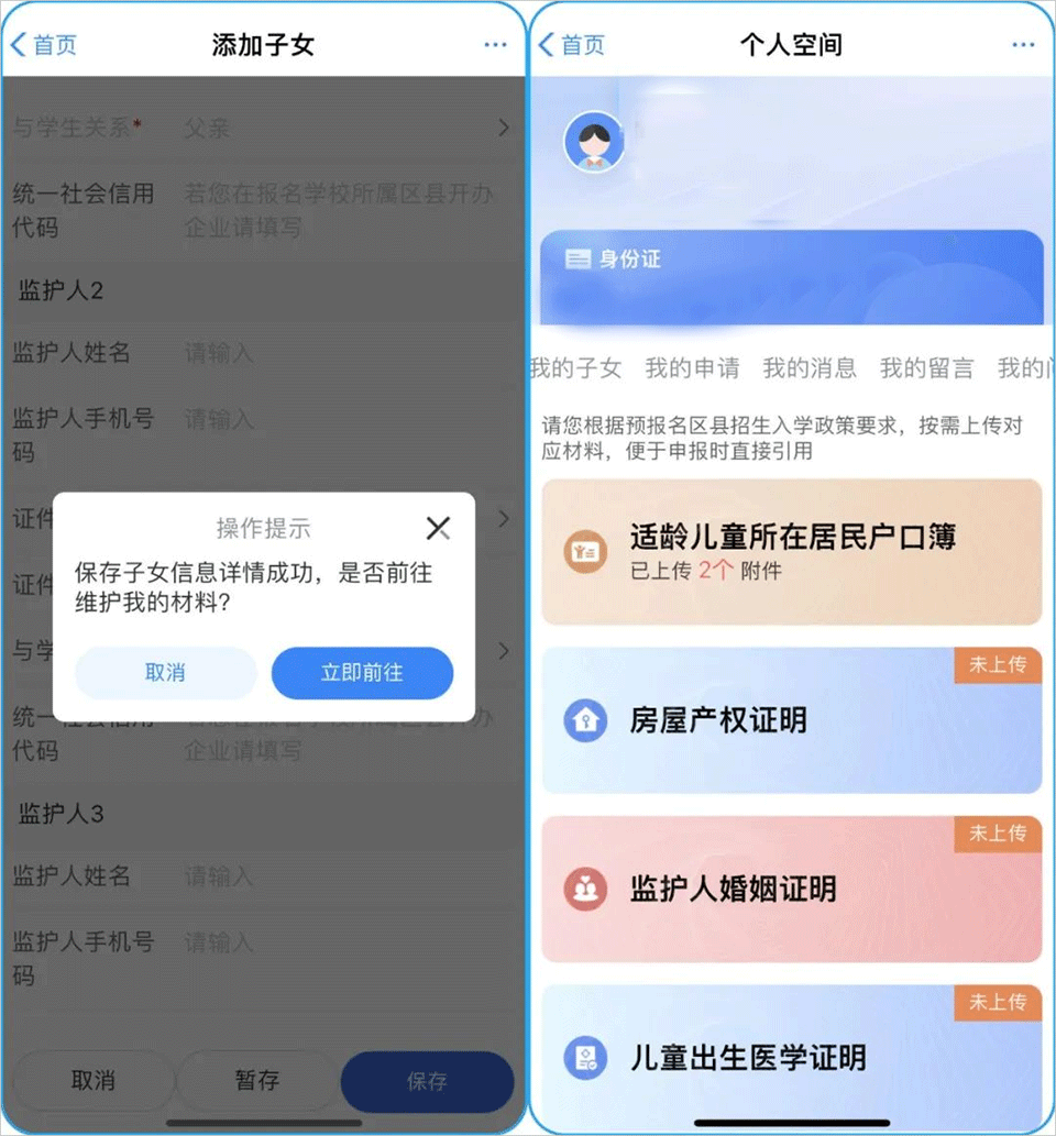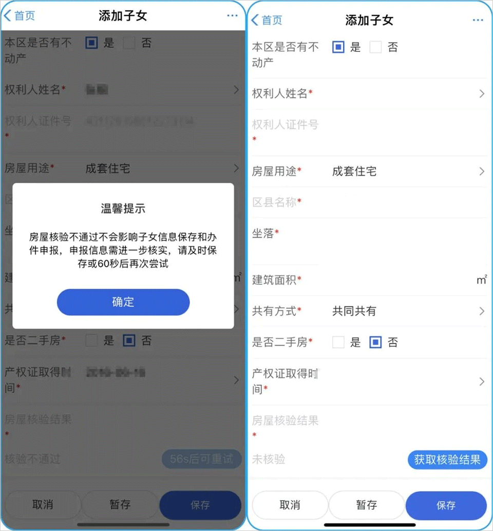 特别提示:获取户籍地址失败和房产获取核验结果失败,均不影响子女信息保存以及后续在线报名,只是填报信息需要进一步核实。家长们无需多虑!