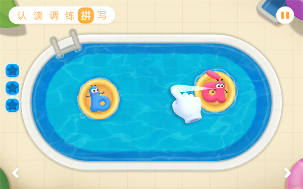 益智互动:将互动和拼音知识交融,比如听拼音发音戳气球、送拼音字母坐飞船,把认读拼音变有趣。