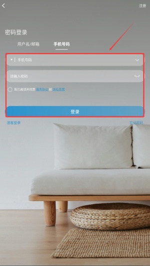 3、在登录页面中,选择您偏好的验证模式,如密码或短信登录。