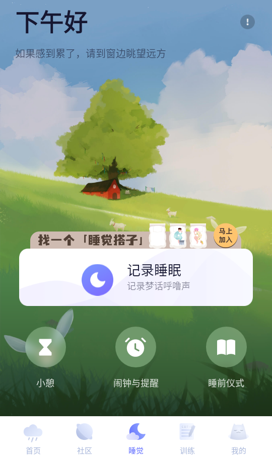 - 睡觉搭子:创建并装扮一个专属你的睡觉小窝,每日与万千睡觉搭子一起云睡觉。