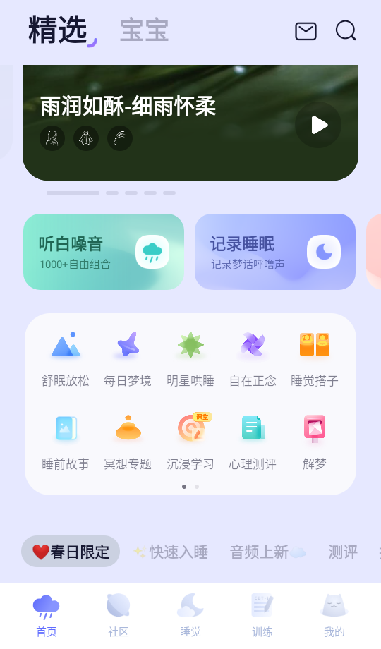 4、对于失眠人群,软件还提供了各种睡眠训练,帮助你快速养成良好的睡眠习惯,摆脱失眠烦恼。