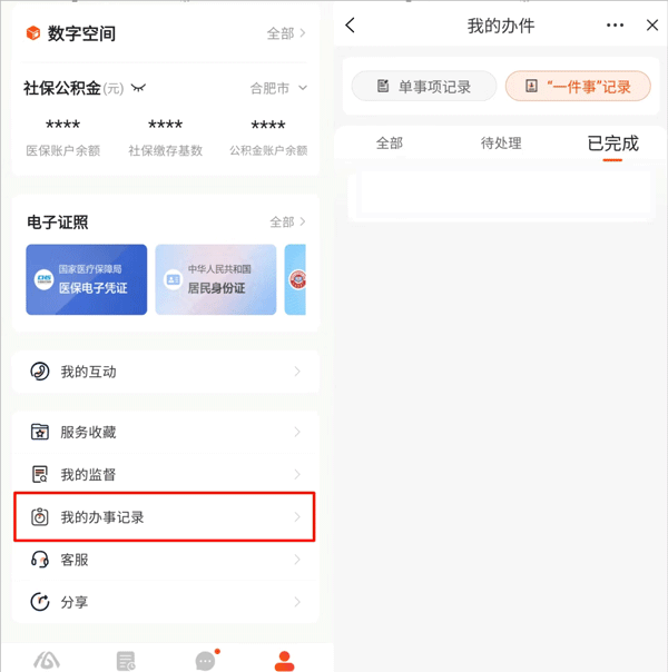 5、查看进度可登录“皖事通”APP,在“我的办事记录”里查看办理进度。