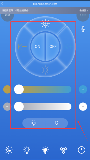 2、在首页点击“智能彩灯、智能灯、风扇灯、开关”等设备图标,即可进行远程控制和设备管理。