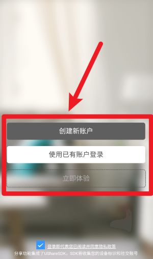 1、首次使用请点击“创建新账户”完成注册,或选择“使用已有账户登录”快速进入系统操作。