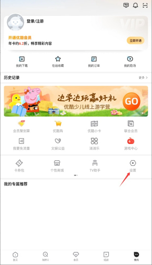 3、在个人页面选择"设置"选项,进入系统功能与偏好配置界面。
