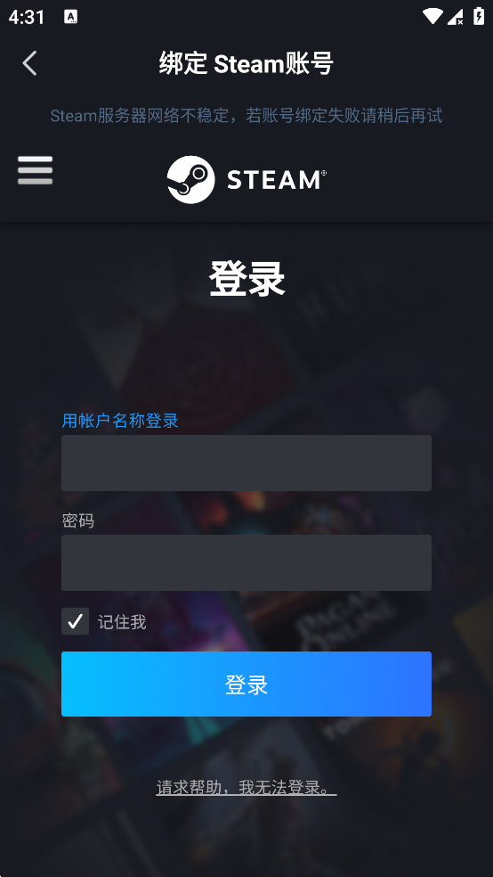 2、在连接到Steam社区后,输入你的Steam账号,登录后即可完成绑定