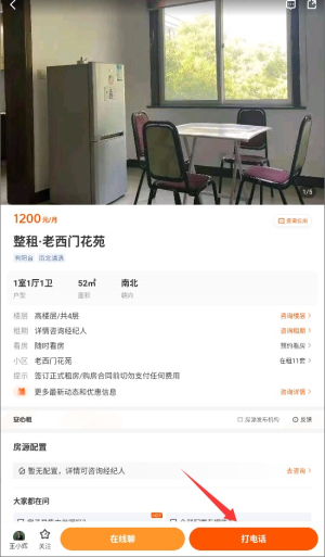 4、查看房屋详细信息后,点击右下角联系按钮即可直接对话房东或房产经纪人。