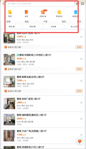 3、通过筛选条件缩小范围,在房源列表中根据需求选择心仪的出租房屋。