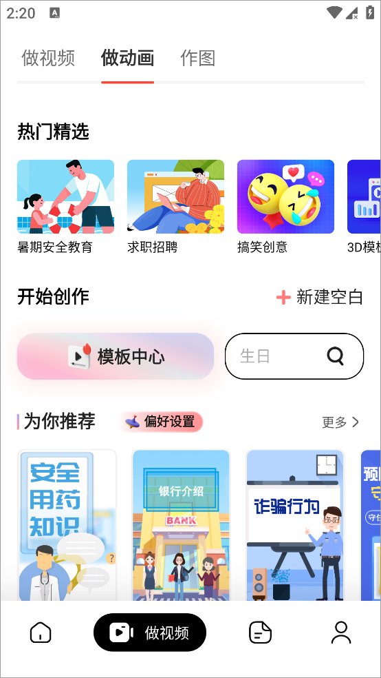 4、接着点击回到旧版,点击最下方的“做视频”,接着点击“做动画”