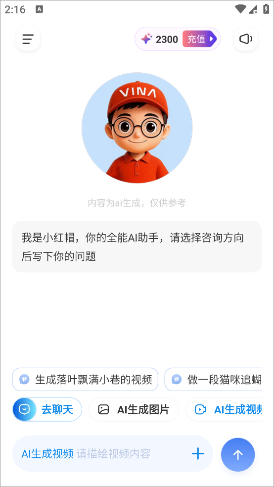 2、点击首页的人物形象点击下方的“ai生成视频”描绘想要的视频内容发送即可获得ai视频