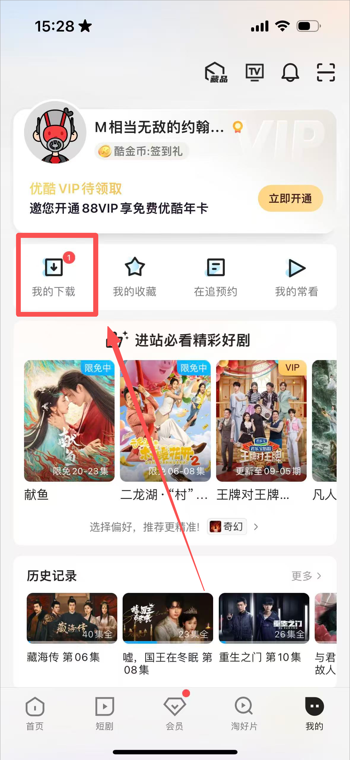 4、此外回到首页点击“我的”在个人主页点击“我的下载”也可以查看下载进度并离线观看