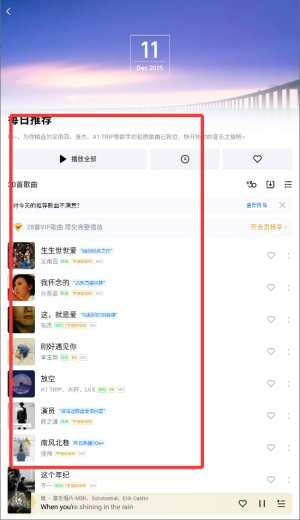 3、在每日推荐列表中,选择您感兴趣的单曲或歌单,点击其封面或标题进入。