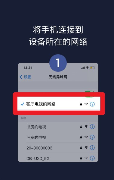 1. 打开手机的“设置”,进入“无线局域网”选项,连接到电视所处的同一 Wi-Fi 网络,例如“客厅电视的网络”。