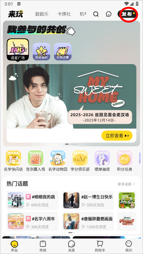 2、或者在我的界面中点击发布按钮