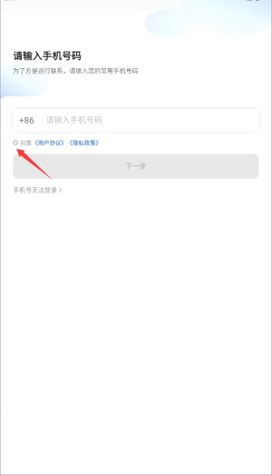 3、在登录页面勾选同意用户协议与隐私政策条款,进入身份验证步骤。