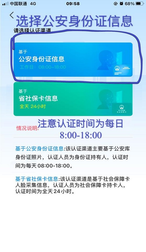 4、选择“公安身份证信息”进行认证(注意:认证时间为每日08:00-18:00)