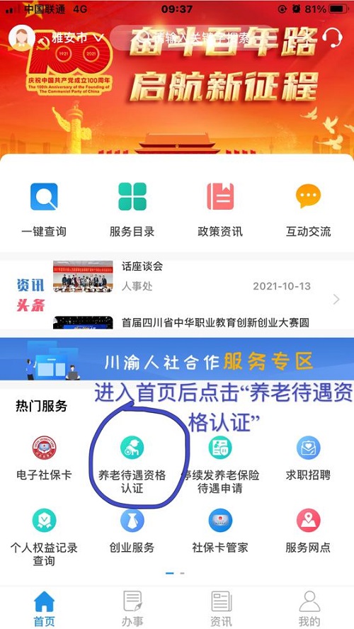 1、进入首页后点击“养老待遇资格认证”进行认证操作