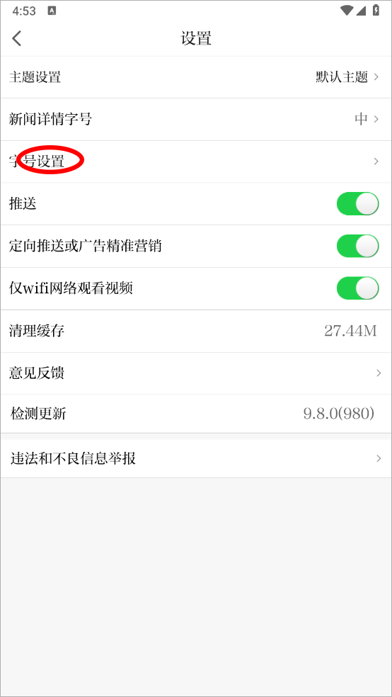 3、早设置界面点击字号设置