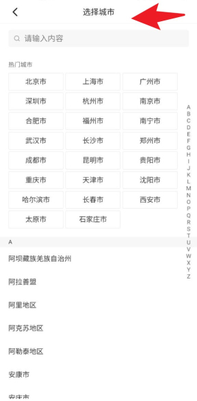 2. 点击左上角展开城市选择页,在热门城市或搜索框中输入关键词,即可切换你所在或想查询的城市。