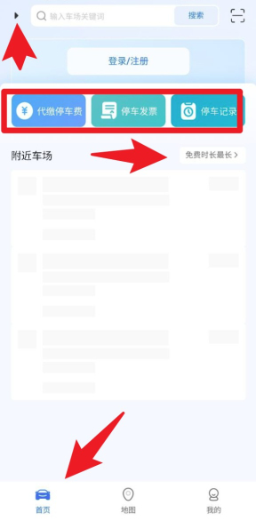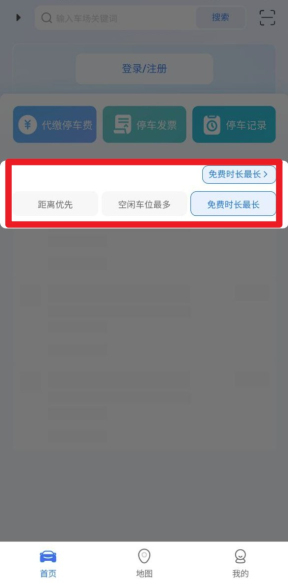 3. 首页右上方提供“排序筛选”按钮,支持根据距离、空闲车位或免费时长进行优先排序,快速找到合适车位。