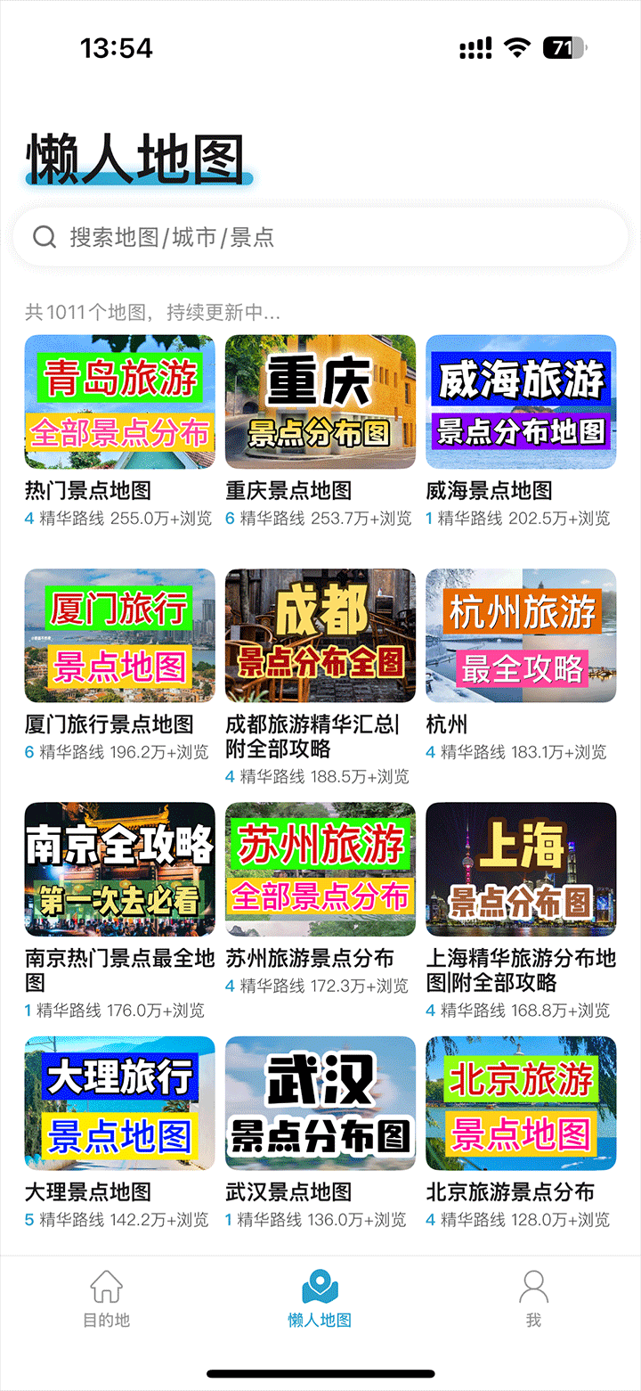 2、选择好后就可查看目的地的攻略及景点路线还能发布自己的旅游攻略