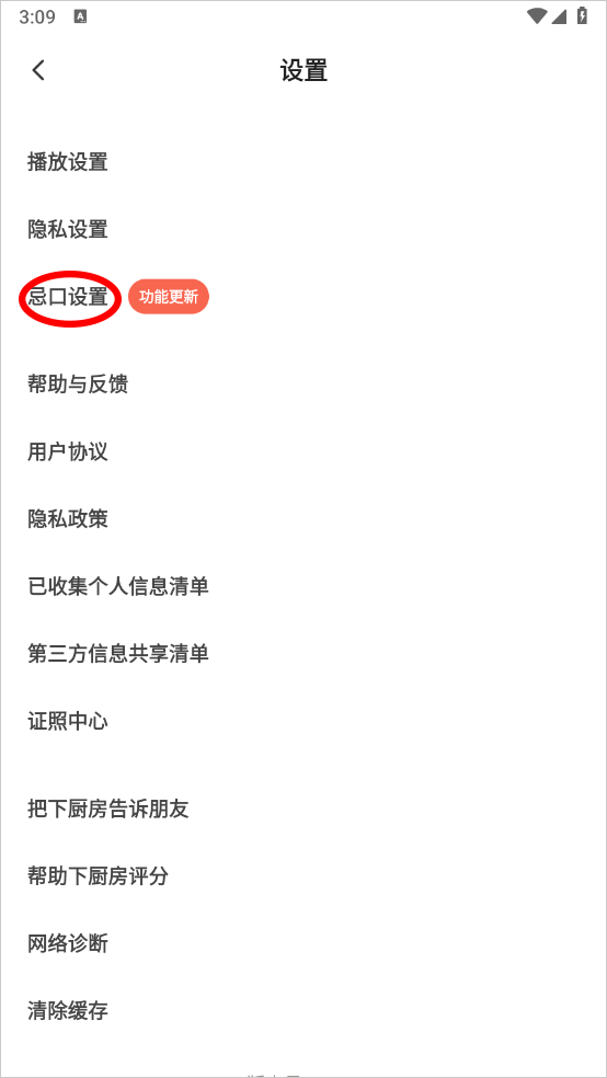 3、在设置界面点击忌口设置