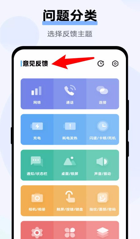 1、在“意见反馈”页面中选择问题分类,例如网络、通话、充电等,帮助系统快速识别问题类型。
