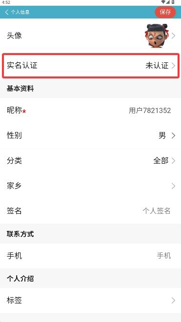 3、在个人信息设置菜单中找到并选择"实名认证"功能模块,进入身份验证流程。
