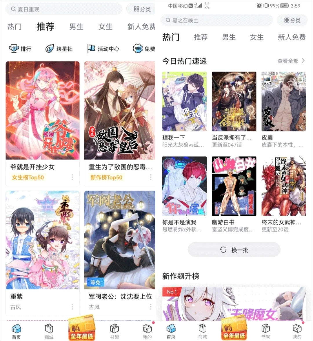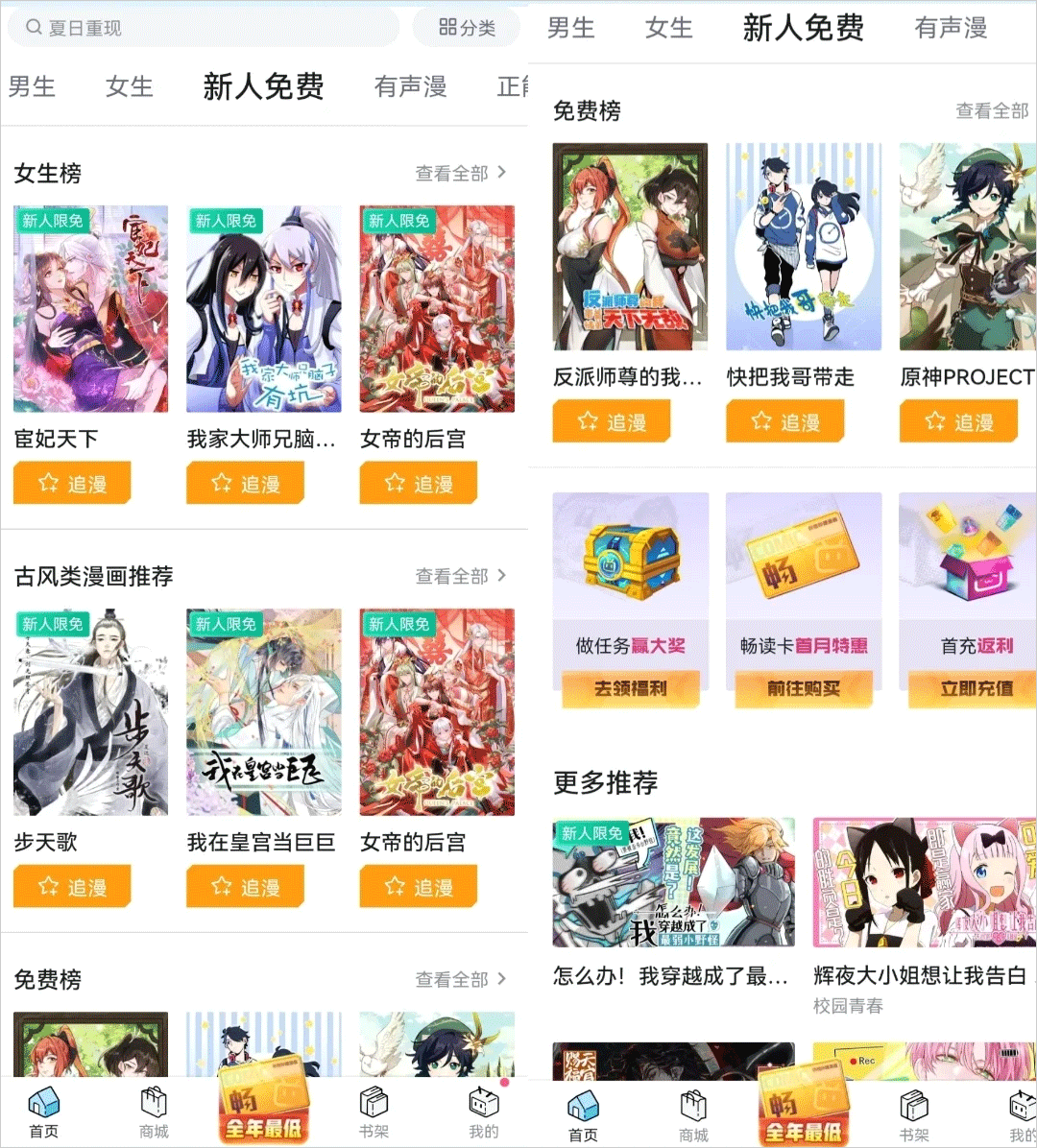2、新人免费漫画也超多的,可以根据不同喜欢选择