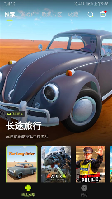 1、打开软件进入主界面,可以查看推荐、游戏库、联机专区和收藏频道,在当前推荐频道可看到系统推荐的热门游戏;