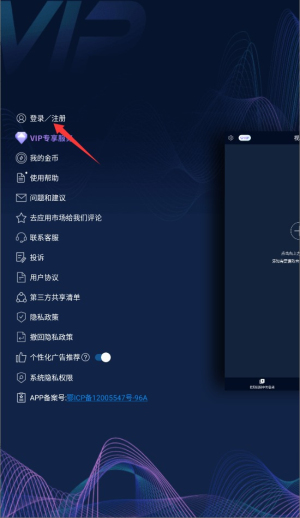 3、在弹出的侧边栏或菜单中,选择“登录/注册”选项进入账户管理页面。