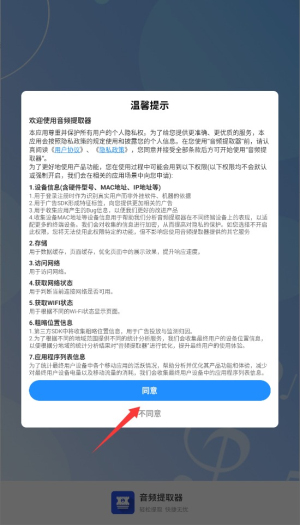 1、首次启动应用时,系统会显示用户协议和隐私政策,阅读后点击同意按钮进入主界面。