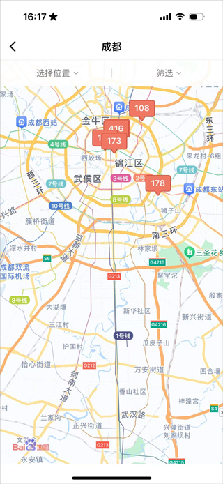3、可以查看整个城市的地图以及酒店,方便用户查看附件有什么景区、地铁等