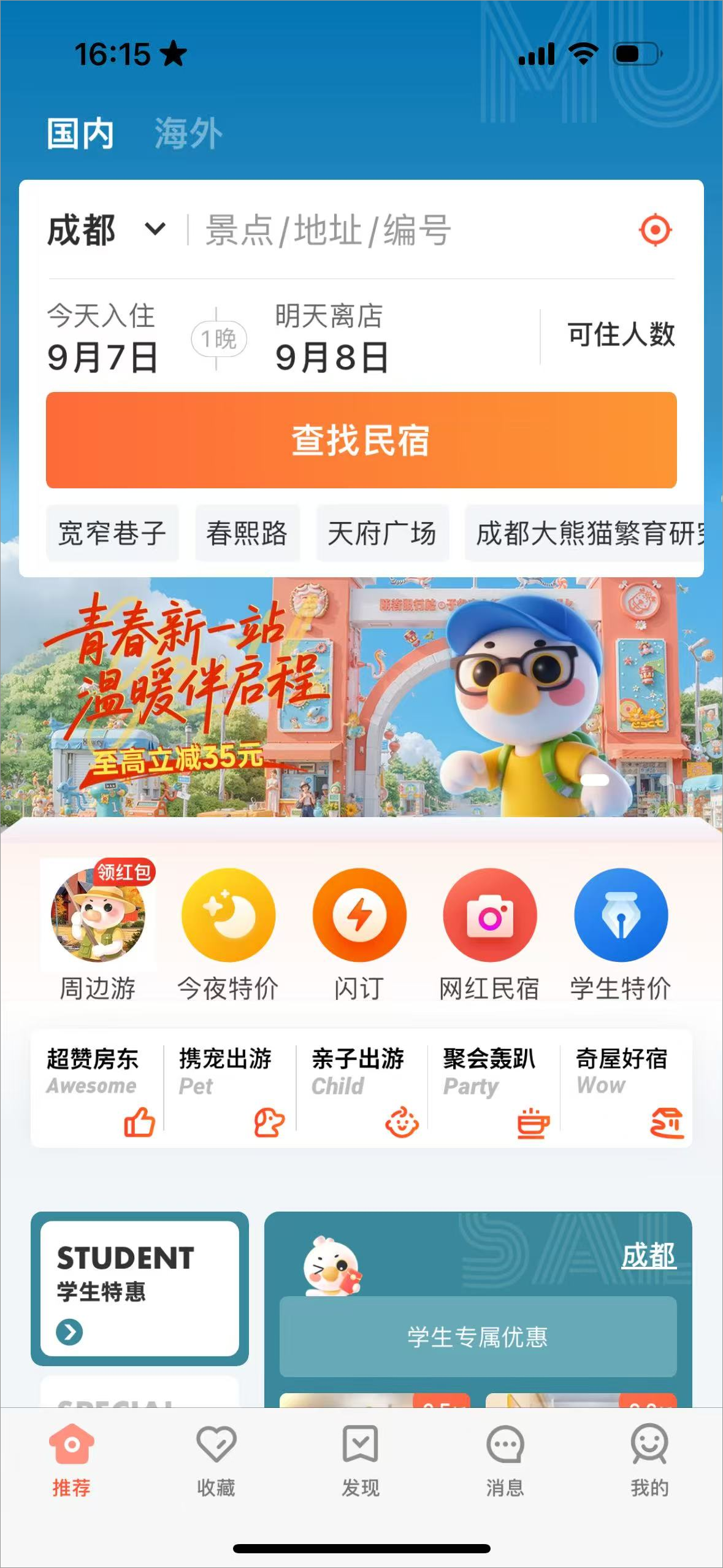 1、海量房源任你选:全国及海外热门旅游城市全覆盖。周末游周边游住宿预订性价比之选。