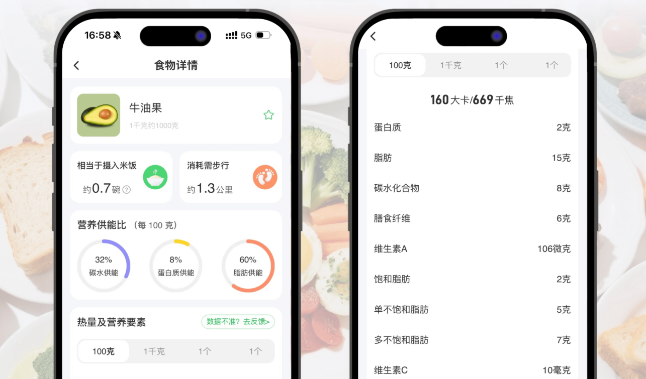 支持查询食物热量和营养成分,精准记录摄入与消耗,提供专业营养建议,支持与厨房秤联动+自定义运动记录,助你实现膳食能量平衡。