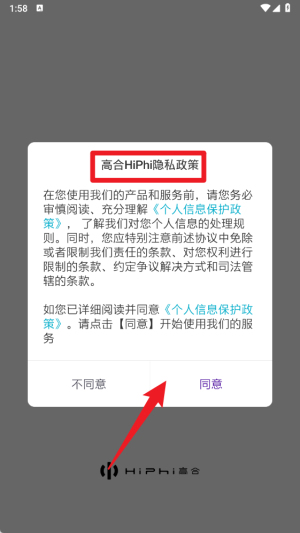 1、首次打开应用,会弹出《高合HiPhi隐私政策》与《个人信息保护政策》,请阅读后点击“同意”继续使用。