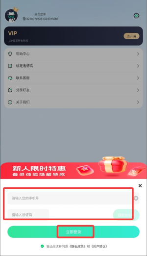 4、输入注册手机号码并获取短信验证码,填写后即可完成登录操作。