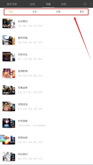 【海量书库】书城图书繁多,种类齐全,包括玄幻、武侠、言情、都市、穿越、宫斗、历史、军事、热门、网络、经典小说