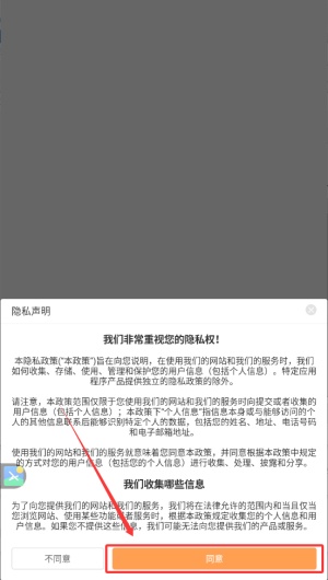 1、首次进入软件时,请阅读并点击同意用户协议,即可成功打开应用。