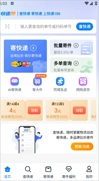 【比价寄件】:首页发放优惠券,低至6元起/单!汇聚顺丰/圆通/中通/申通/韵达/极兔/京东/德邦等品牌快递,一键比价查时效自由选,上门取件,丢损必赔。
