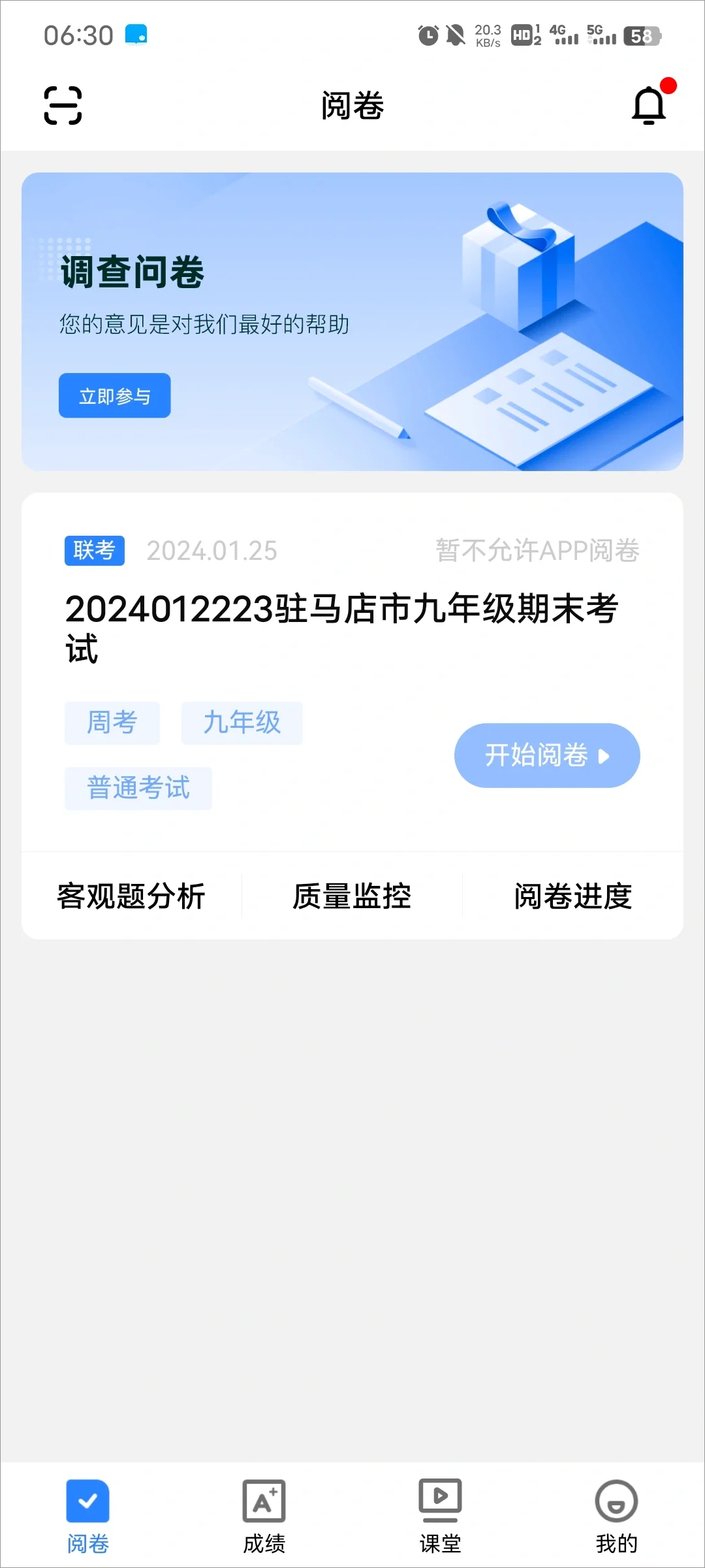 1、登入账号后可以看到首页会有考试卷点击“开始阅卷”
