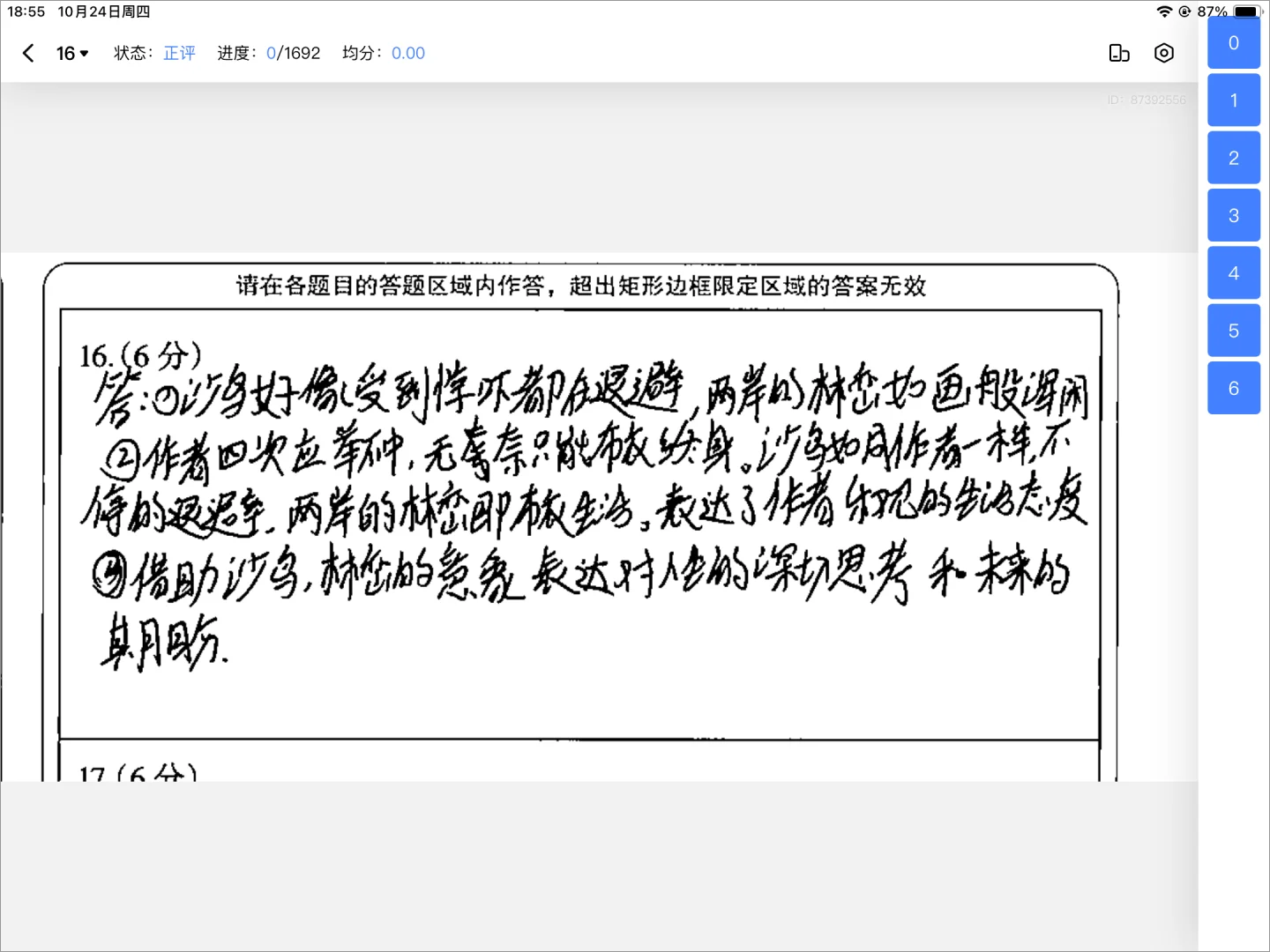 2、即可看到同学们的答题卡,支持放大观看,点击右边的操作栏即可批改试卷