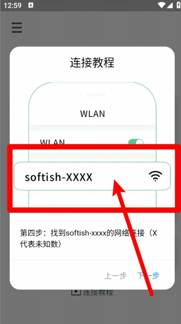 2.设备名称通常显示为softfish-xxxx之类,请仔细确认,别点错影响连线顺畅度。