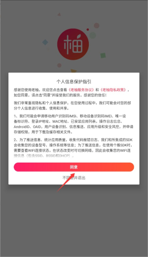 1、首次启动应用时,系统会显示用户协议和隐私政策,阅读后点击同意按钮进入主界面。