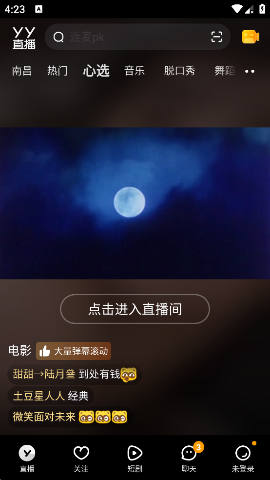 1、打开YY直播交友软件手机最新版,首页会有热门直播推荐,也可以直接搜索想看的主播,搜索框下方还可以选择想看的类型