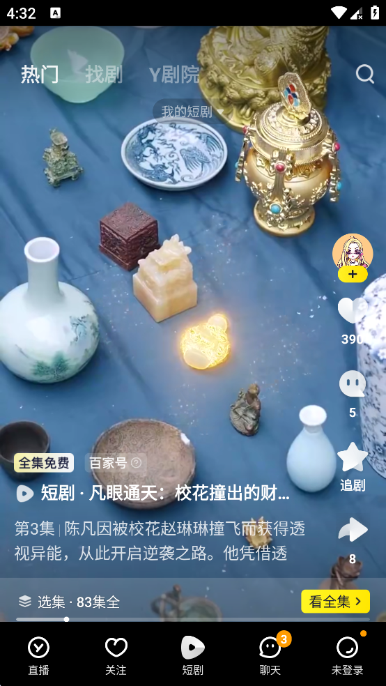 3、除了直播,交友以外还有可以免费观看热门短剧,点击追剧可以实时收到更新的通知