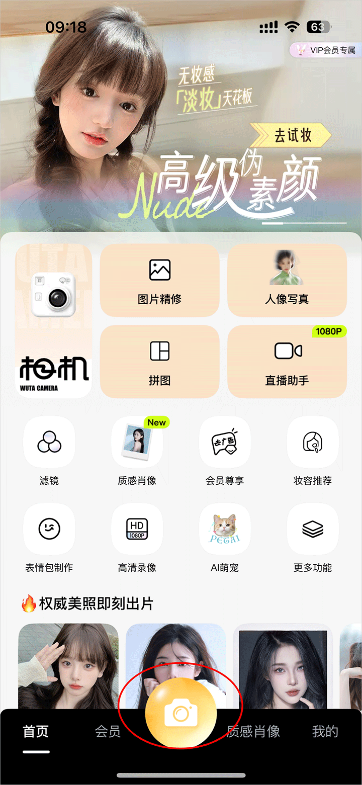 1、进入软件首页,直接点击相机;